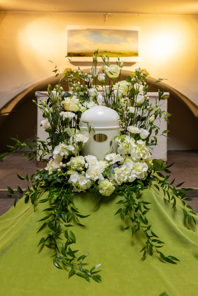 En begravning med urna är ett allt vanligare val. Den ger möjlighet till en värdig ceremoni, samtidigt som den erbjuder större frihet i tid och plats. Urnan med den avlidnes aska står i centrum under ceremonin – ofta vackert dekorerad och omgiven av blommor och minnen.