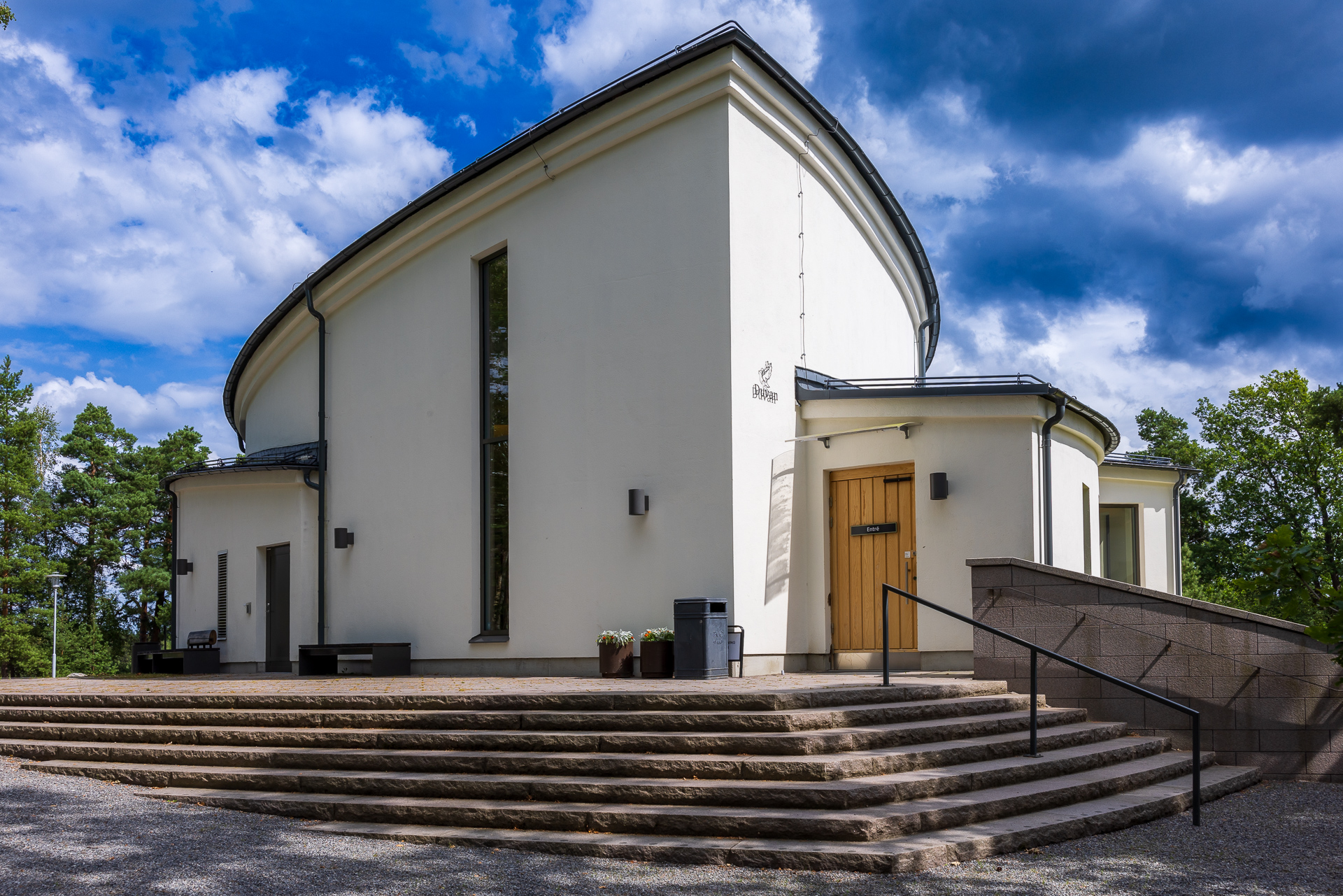 Duvans kapell ligger nära Boo kyrkogård och har goda parkeringsmöjligheter samt handikappanpassning. Den moderna arkitekturen, inspirerad av naturens former, ger en stilren och rofylld atmosfär som passar för minnesstunder och avsked.