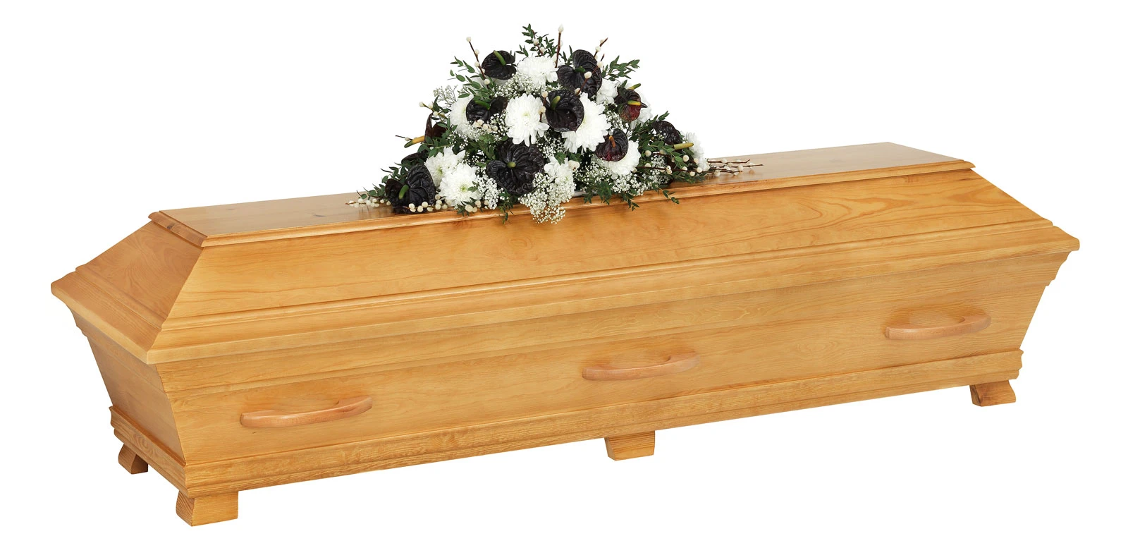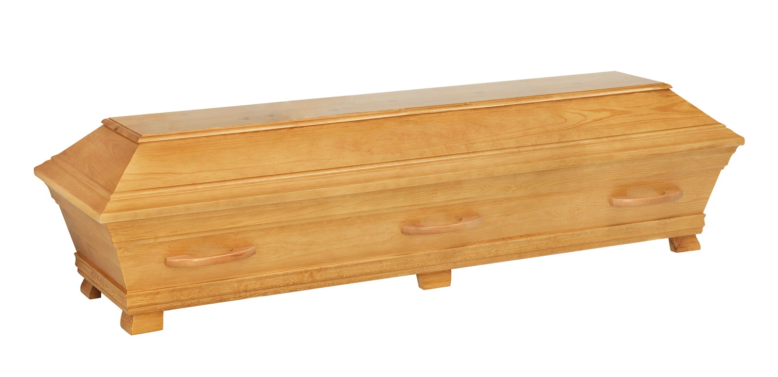 De robusta handtagen är tillverkade av massivt bokträ och harmonierar med kistans naturliga design. Alvö Ekbets är godkänd för både jordbegravning och kremation.