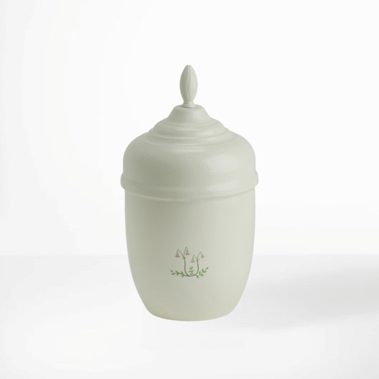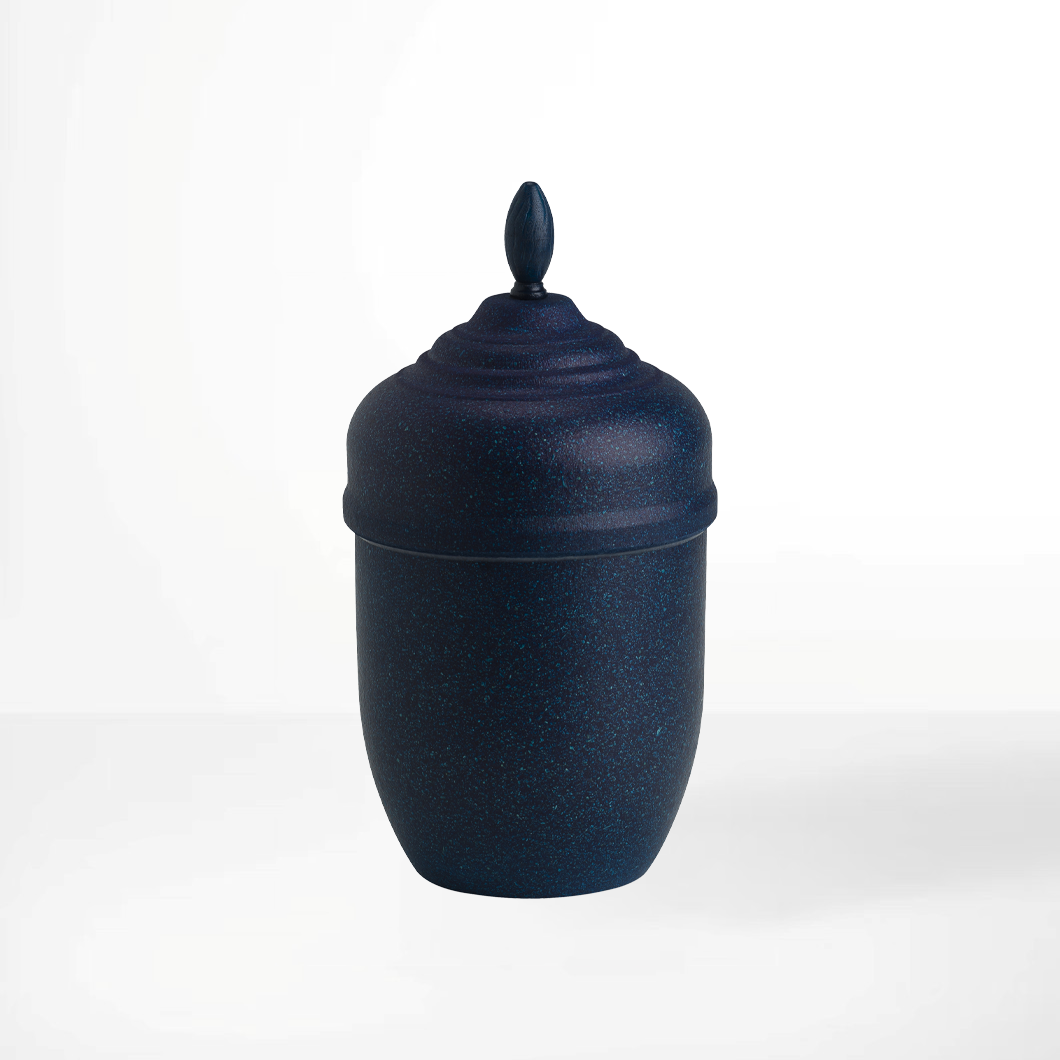 Urna av pressad, genomfärgad bark. Förgängligt material. Levereras med fackla som toppdekor. Sänkband ingår ej.