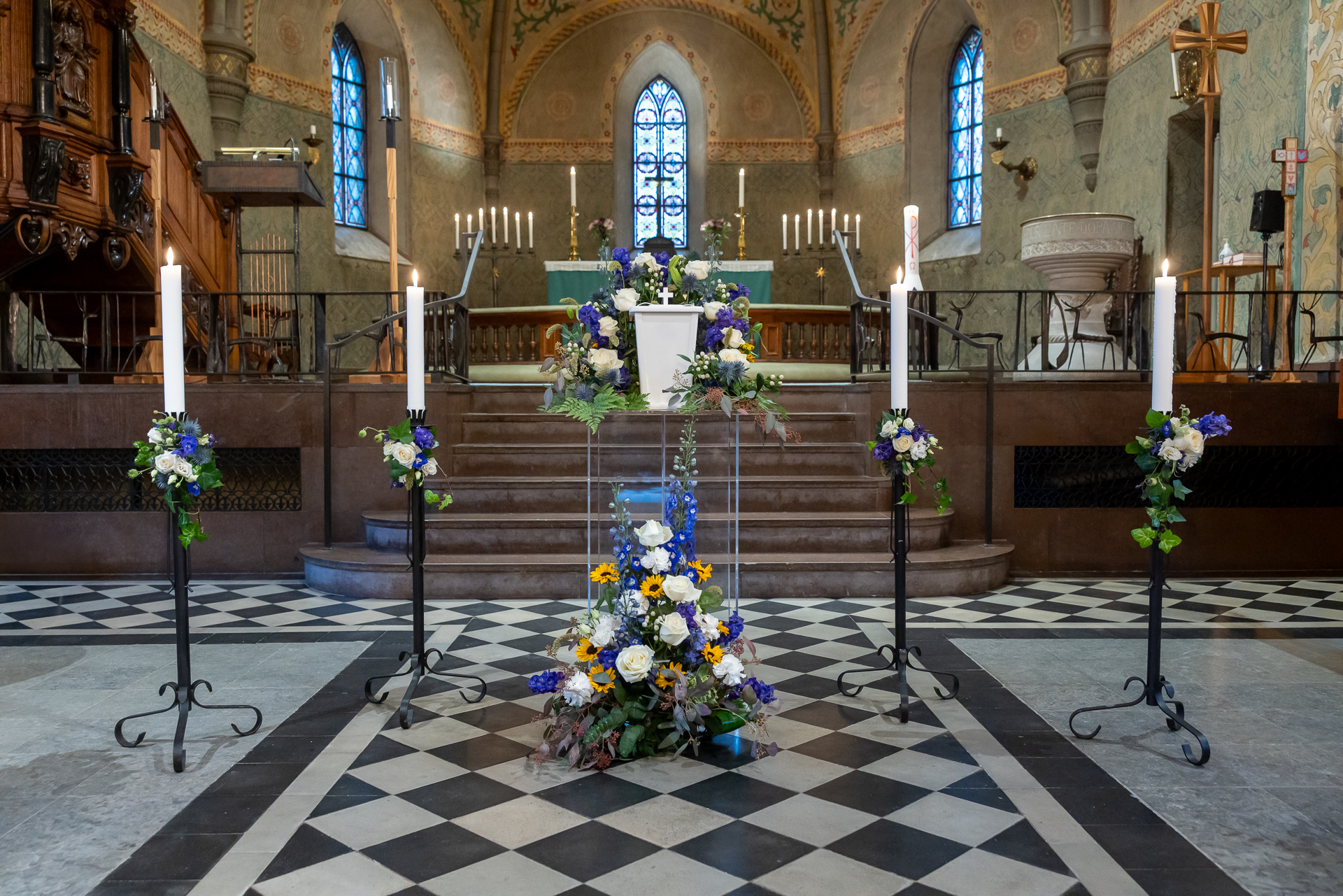 Lägg till dekoration för ljusstakar (säkerställ med kyrka/kapell att ni får sätt dekorationer på ljusstakarna innan beställning)
