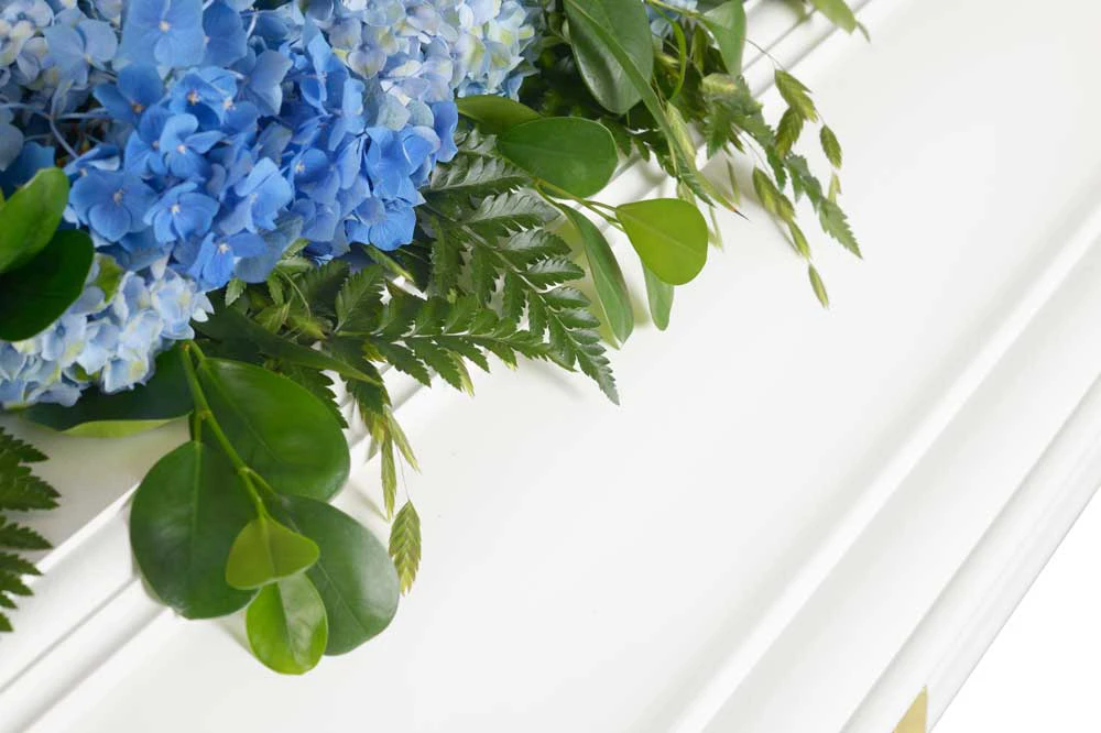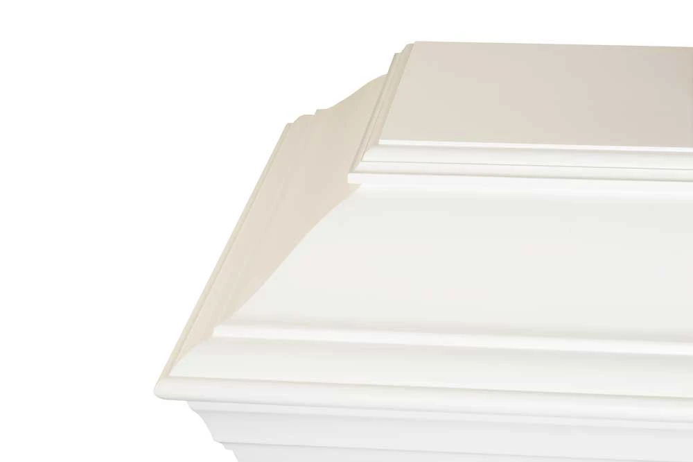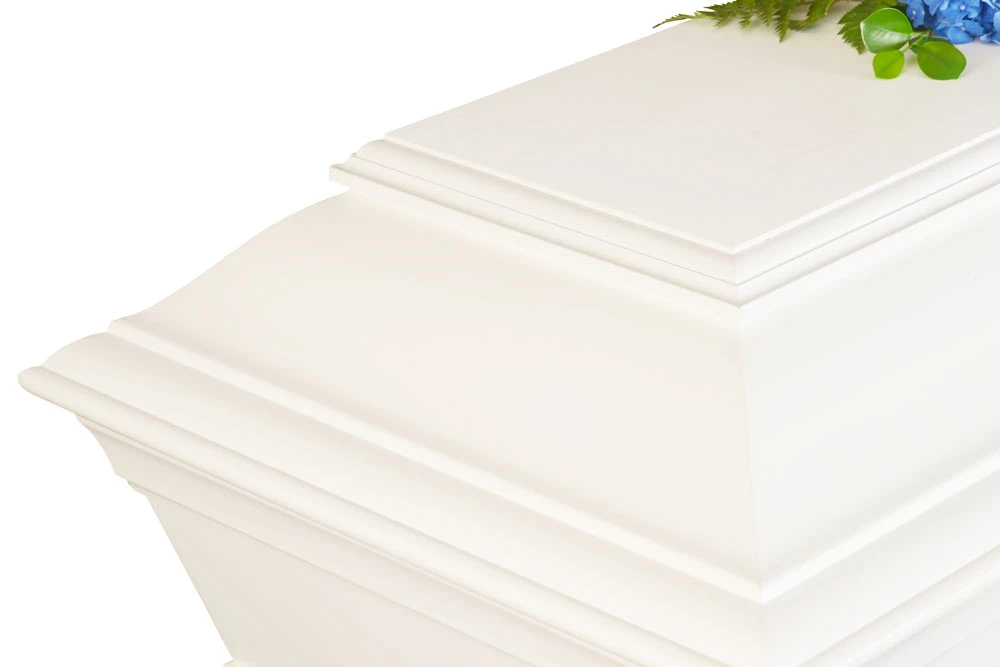 Kistan är omsorgsfullt vitmålad, vilket låter träets naturliga ådring och struktur subtilt framträda under ytan, vilket ger den ett vackert och genuint uttryck.