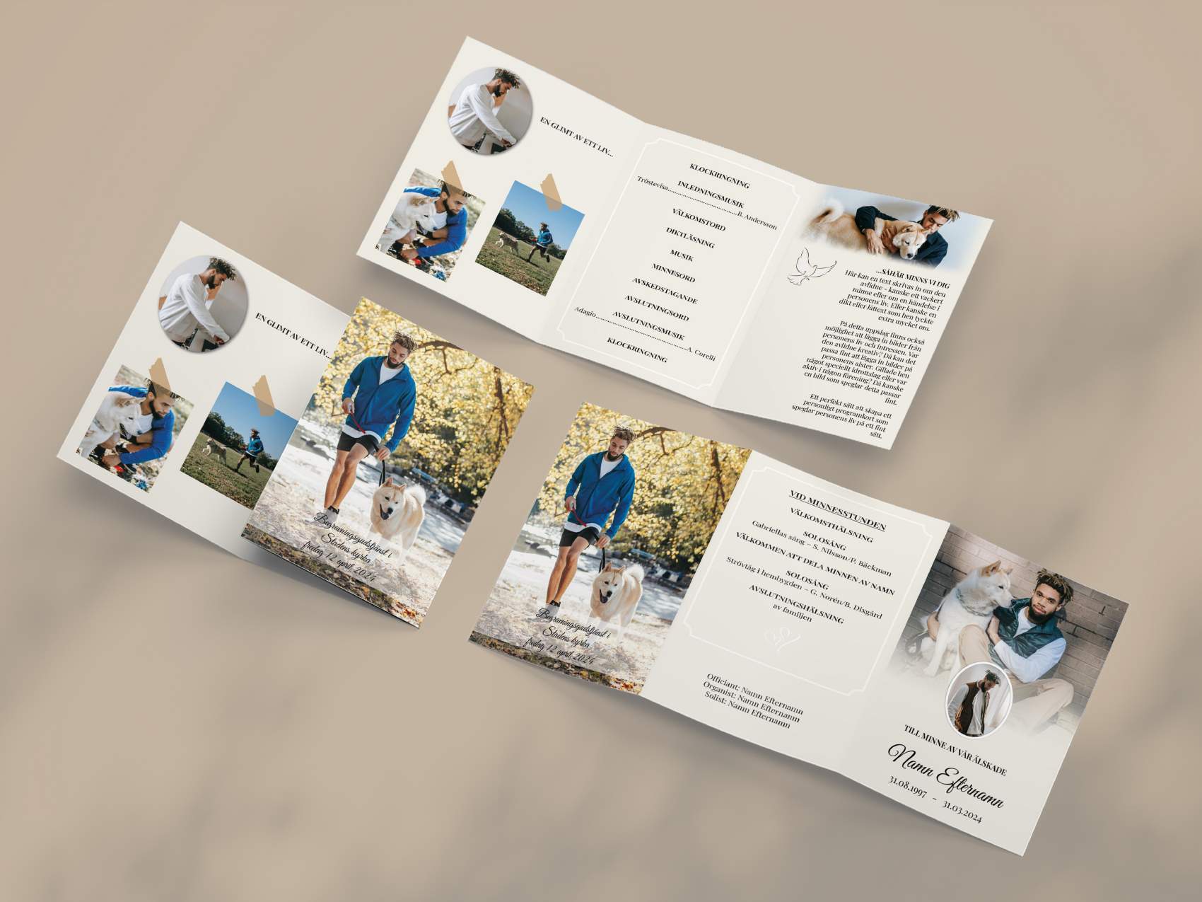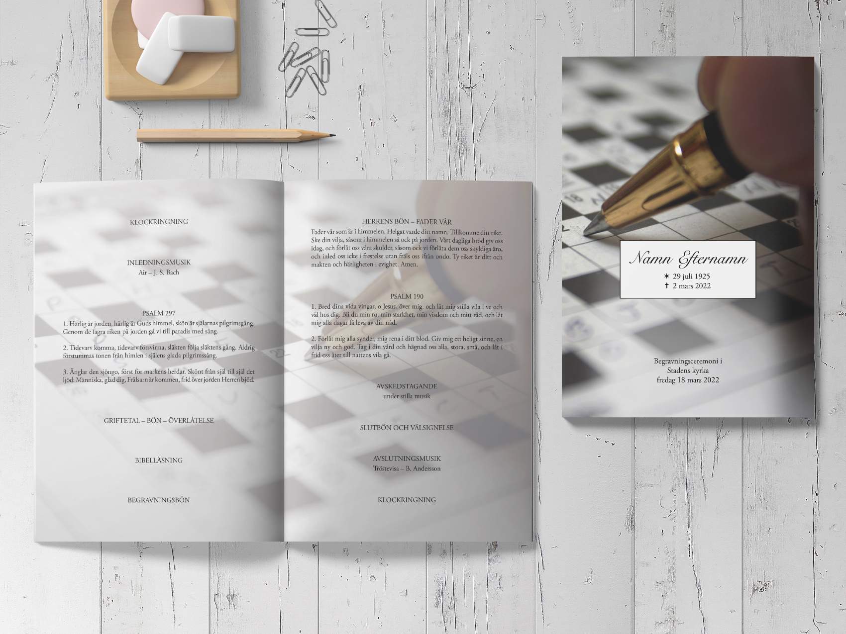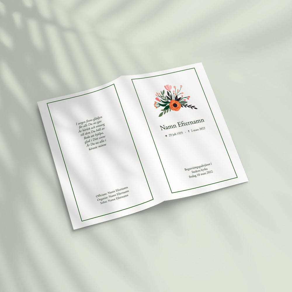 Ge ceremonin en personlig och värdig inramning med ett vackert utformat programblad. Programbladet fungerar som en vägledning för gästerna och ett minnesvärt inslag att ta med hem.