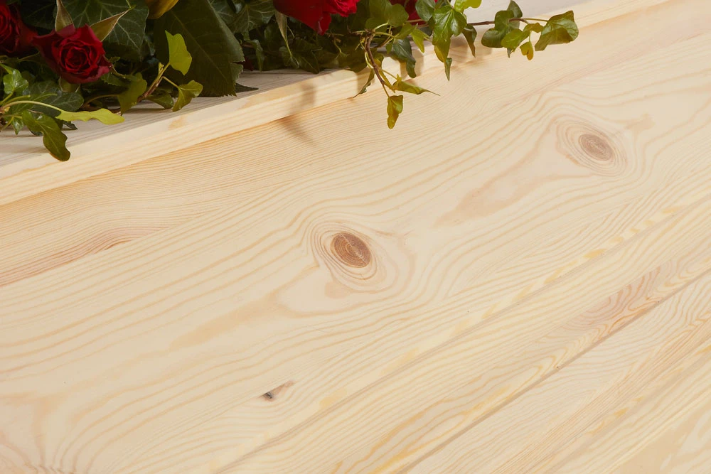 Sandholm XXBL Natur är tillverkad i massiv furu med vackert bearbetade fasningar och detaljer som lyfter fram träets naturliga elegans. Den obehandlade ytan ger ett genuint och jordnära uttryck, vilket gör kistan till ett stämningsfullt val för ett personligt och värdigt avsked.