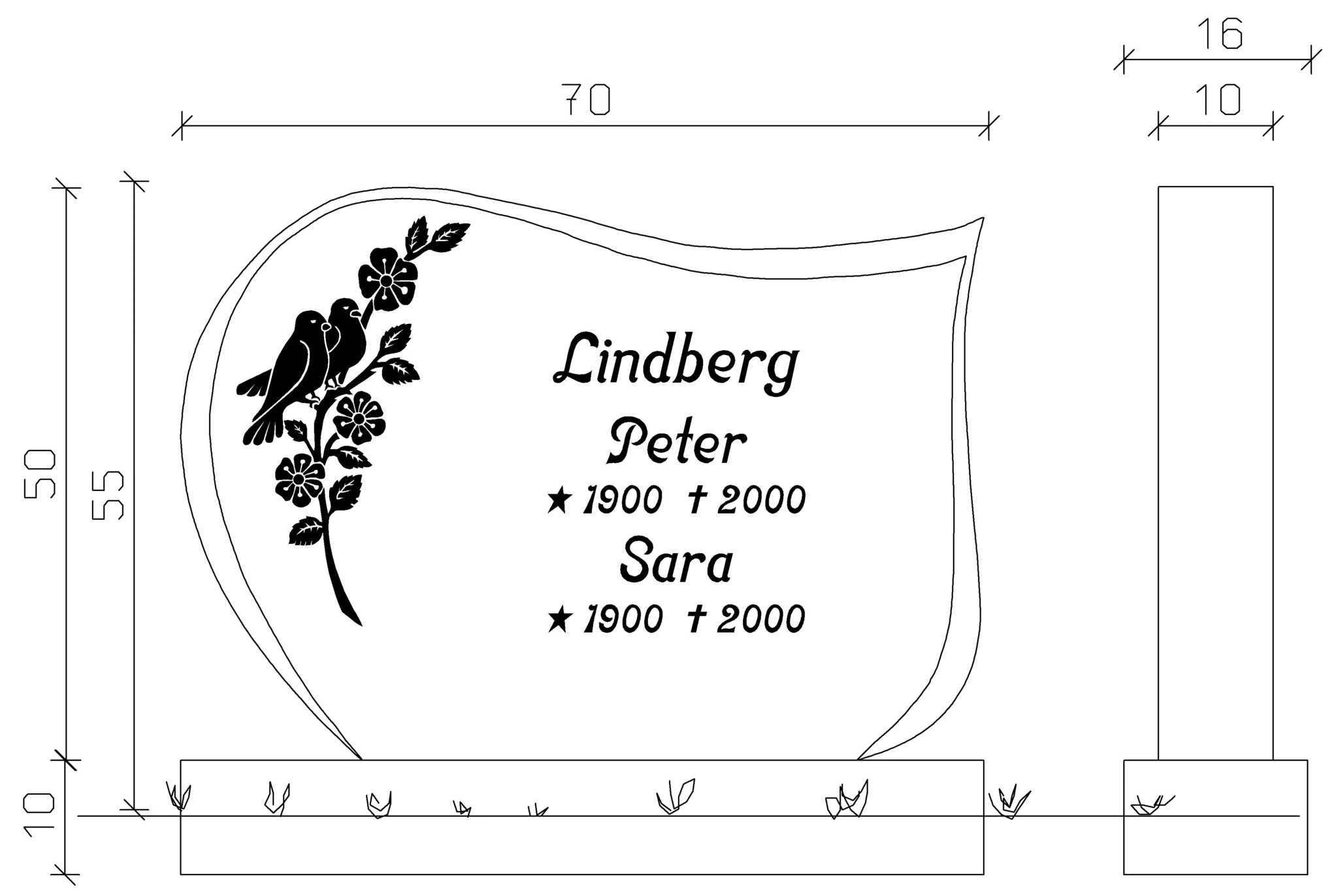 Transport och monteringskostnad tillkommer och är beroende på kyrkogård och valda tillbehör. Exemplet på bilden kan innehålla tillval som tillkommer mot en kostnad. Specificerat konstnadsförslag lämnas allitd innan beställning.