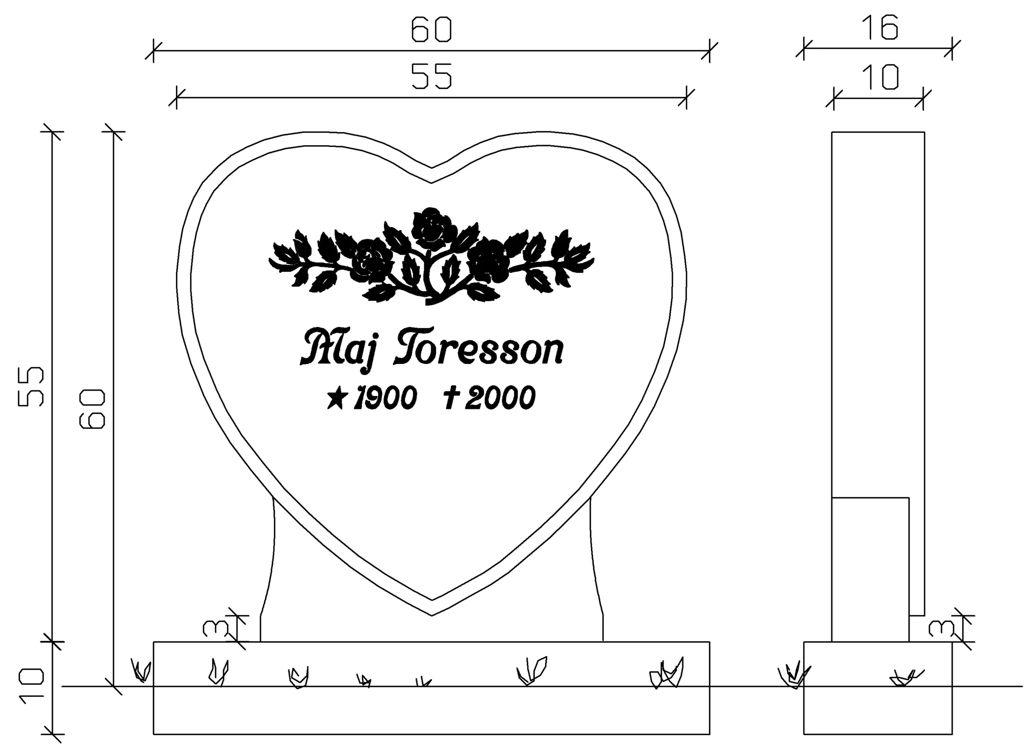 Gravsten E019 är en stående hjärtformad modell med mjuka linjer och ett personligt uttryck. Den levereras med sockel och har gott om plats för inskriptioner och dekorer. Modellen kan anpassas med olika tillval och finns att beställa i flera granitsorter.