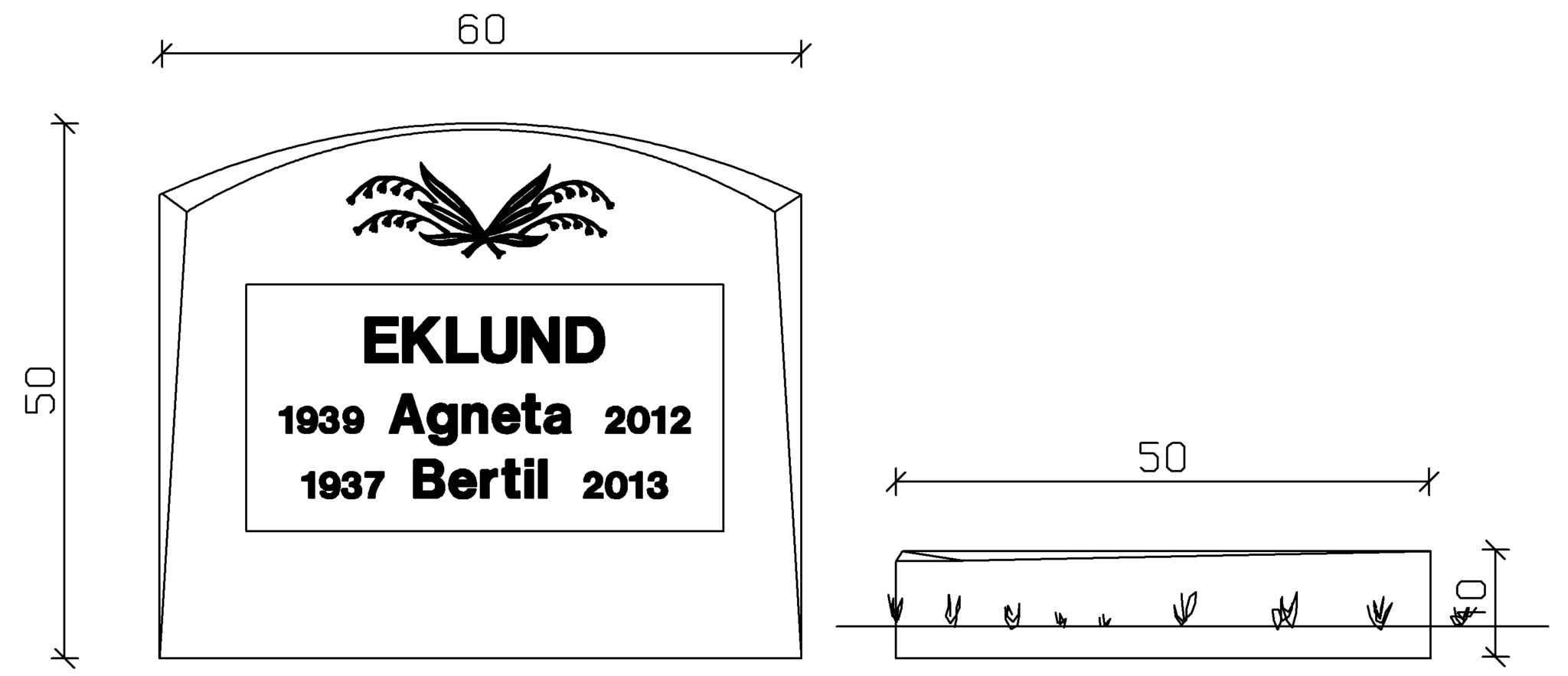 Modell E041 är en liggande gravsten med en tidlös och harmonisk design. Ovansidan är mjukt sluttande vilket ger ett elegant och diskret uttryck, medan den fasade kanten skapar en subtil detalj som förstärker helhetsintrycket. Formen är klassisk och proportionerad för att passa väl på traditionella gravplatser, vilket gör stenen till ett värdigt och stilrent minnesmärke.