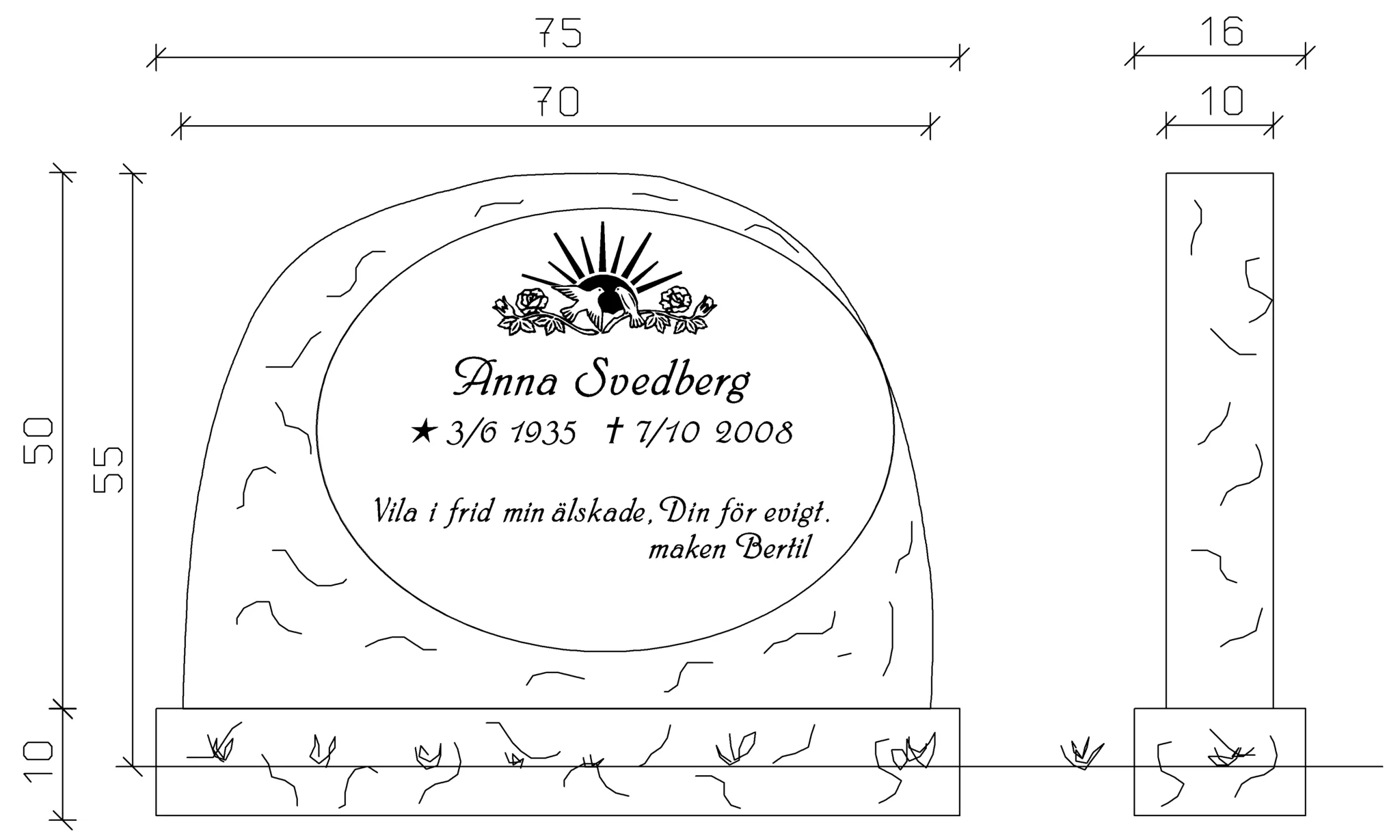 Transport och monteringskostnad tillkommer och är beroende på kyrkogård och valda tillbehör. Exemplet på bilden kan innehålla tillval som tillkommer mot en kostnad. Specificerat konstnadsförslag lämnas allitd innan beställning.