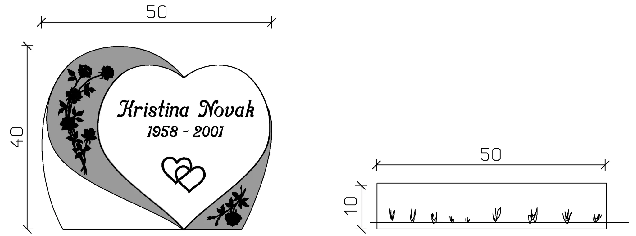 Gravstenen E065 är en liggande modell med en mjukt formad hjärtstruktur som förmedlar ett varmt och personligt uttryck. Dess harmoniska design gör att den passar väl in i olika gravmiljöer och ger ett värdigt intryck. Stenens form erbjuder god plats för personlig text och kompletterande utsmyckning.