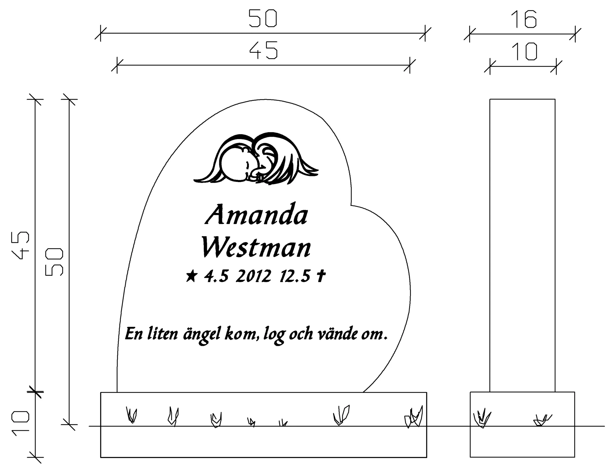 Transport och monteringskostnad tillkommer och är beroende på kyrkogård och valda tillbehör. Exemplet på bilden kan innehålla tillval som tillkommer mot en kostnad. Specificerat konstnadsförslag lämnas allitd innan beställning.