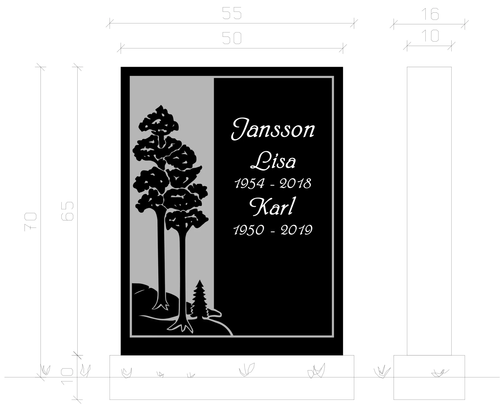 Transport och monteringskostnad tillkommer och är beroende på kyrkogård och valda tillbehör. Exemplet på bilden kan innehålla tillval som tillkommer mot en kostnad. Specificerat konstnadsförslag lämnas allitd innan beställning.