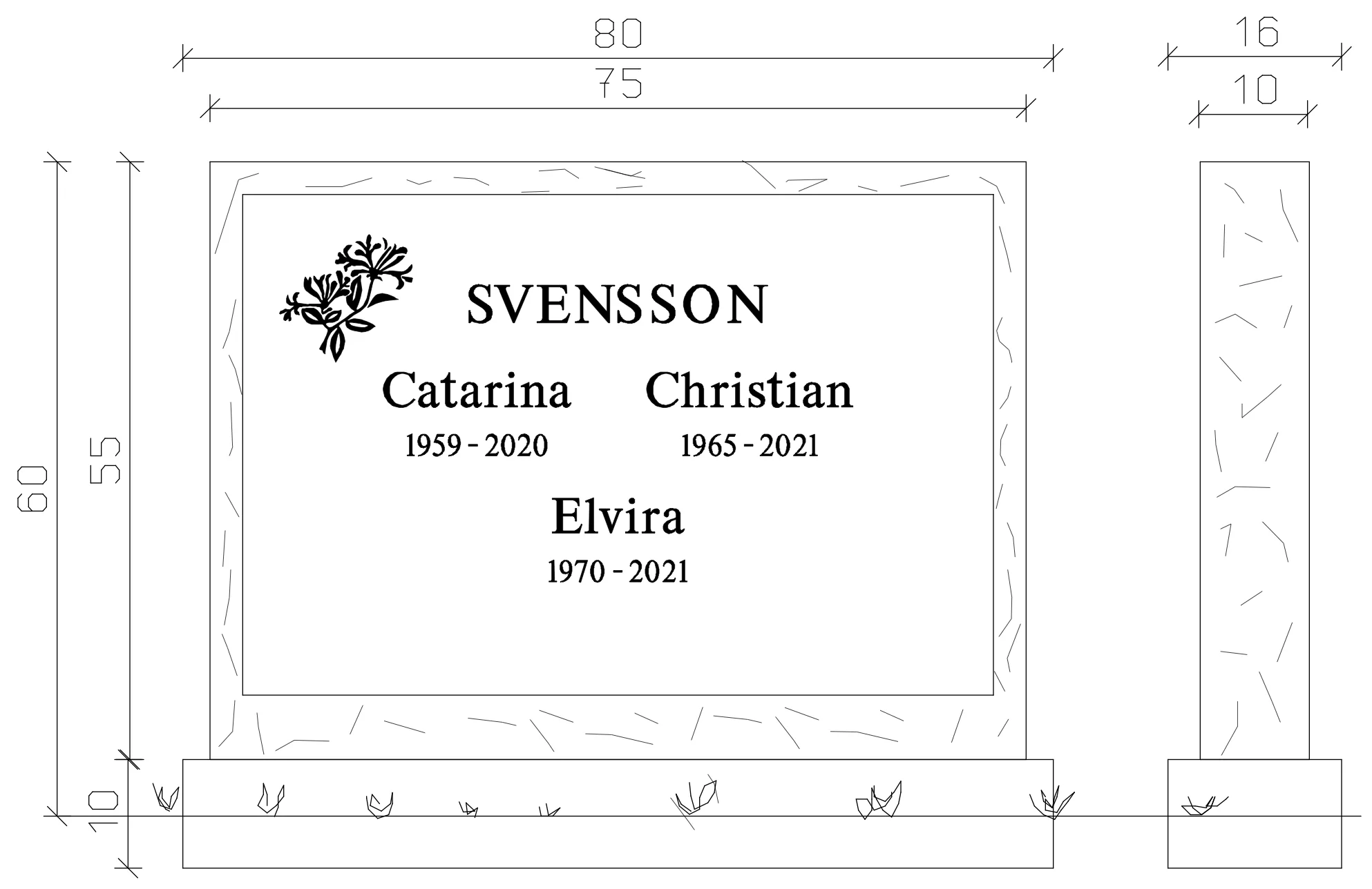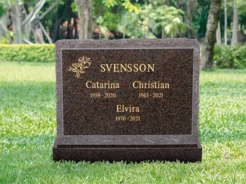 Gravsten modell EN109 har en harmonisk och stilren form som förmedlar värdighet och omtanke. Den är utformad för att skapa ett personligt och bestående minnesmärke som passar i olika typer av minnesplatser. Designen ger ett tidlöst uttryck som hedrar minnet av en älskad person på ett respektfullt sätt.