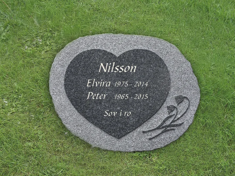 Gravstenen EN114 har en stilren och harmonisk form som ger ett värdigt och tidlöst uttryck. Den är utformad för att passa olika typer av gravplatser och erbjuder en diskret men personlig plats för namn och minnesord. Designen förmedlar respekt och omtanke, vilket gör den till ett fint minnesmärke för en älskad person.