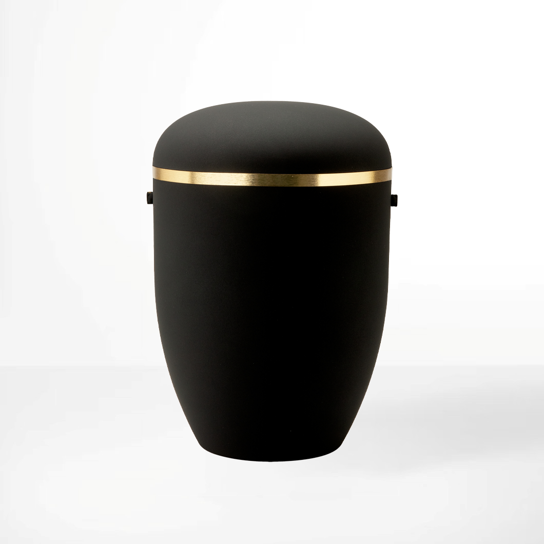 Urna tillverkad av Arboform, en ekologisk trämassa, som till 100% är biologiskt nedbrytbar. Den nätta guldfärgade dekoren ger urnan en känsla av elegans. Finns i färgerna grafit, hav, jord, kalk, kol, mossa, plommon och äggskal. Sänkband i linne medföljer.