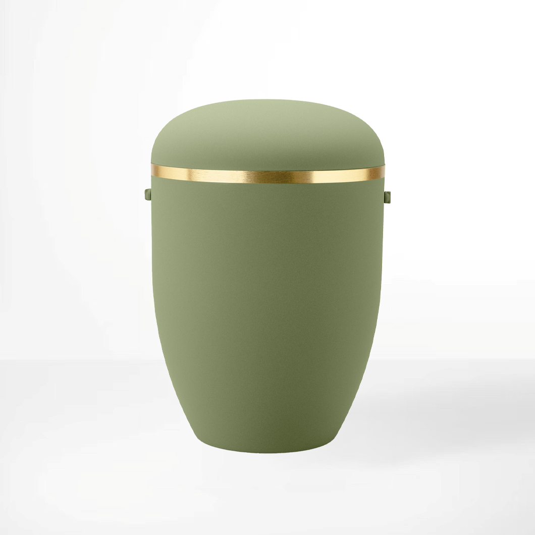 Urna tillverkad av Arboform, en ekologisk trämassa, som till 100% är biologiskt nedbrytbar. Den nätta guldfärgade dekoren ger urnan en känsla av elegans. Finns i färgerna grafit, hav, jord, kalk, kol, mossa, plommon och äggskal. Sänkband i linne medföljer.